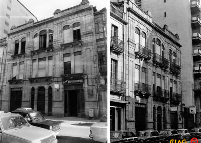 Claramente pódese observar que existen diferencias entre o plano presentado e a obra finalmente construída, e ainda que a estrutura e as proporcións edificio foron respetadas, houbo sustanciais modificacións nas carpinterías, nas estruturas de ferro fundido de balcóns e ventás, así coma na decoración complementaria da fachada.