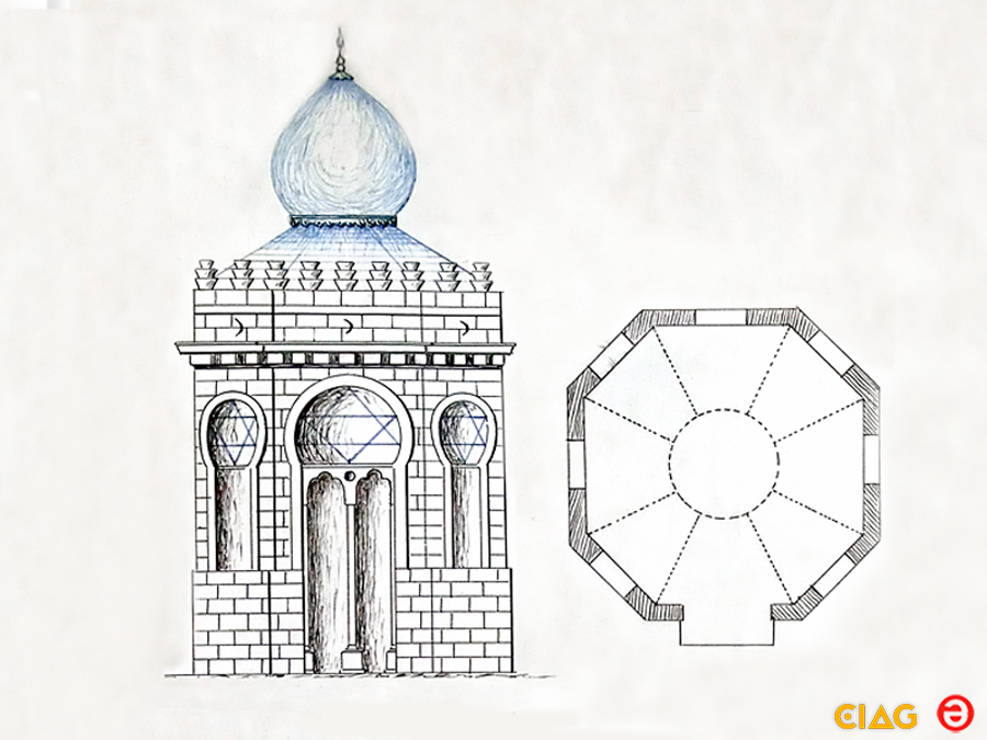 O arquitecto Antonio López Crespo, deseña este fermoso e chamativo kiosco de estilo neomudéxar para ser integrado nun entorno urbano de trazado medieval europeo, como segunda opción tras descartar outro deseño previo máis clásico. De planta hexagonal e cunha gran cúpula árabe fusiforme, arcos de ferradura califais, estrelas de David nas ventás e uso de ladrillo refractario caravista, respostando á influencia orientalista de finais do século XIX e comezos do XX.